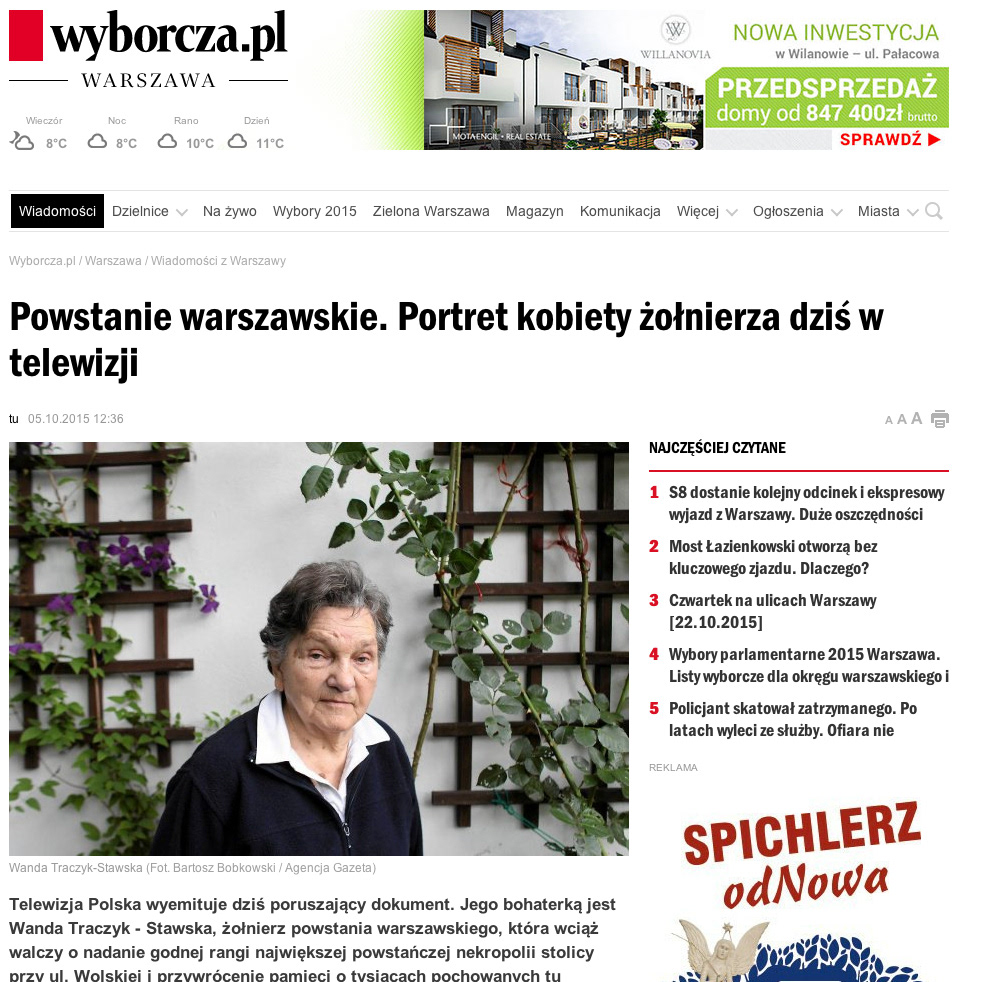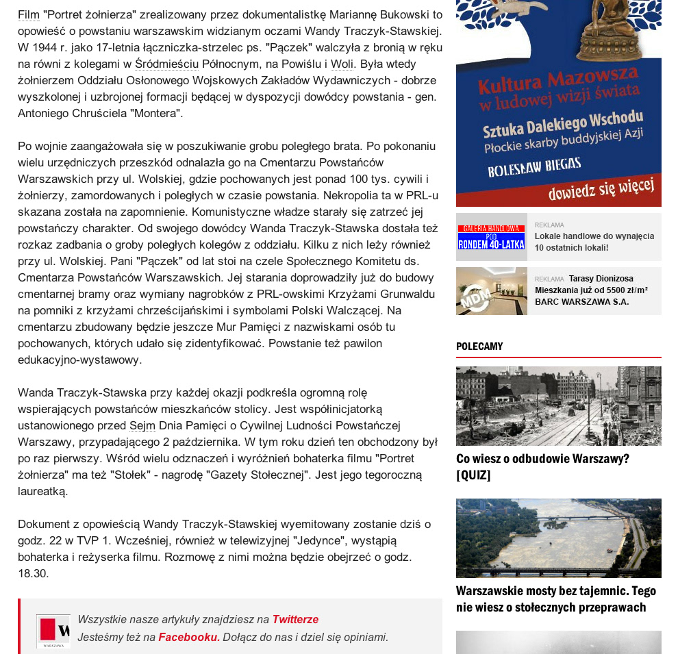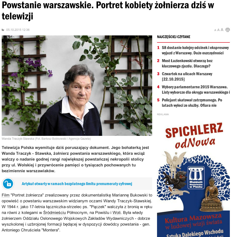 Polish Newspaper Gazeta Wyborcza 4 STARS & 'Pick of the Day' for 'Portrait of a Soldier' film.