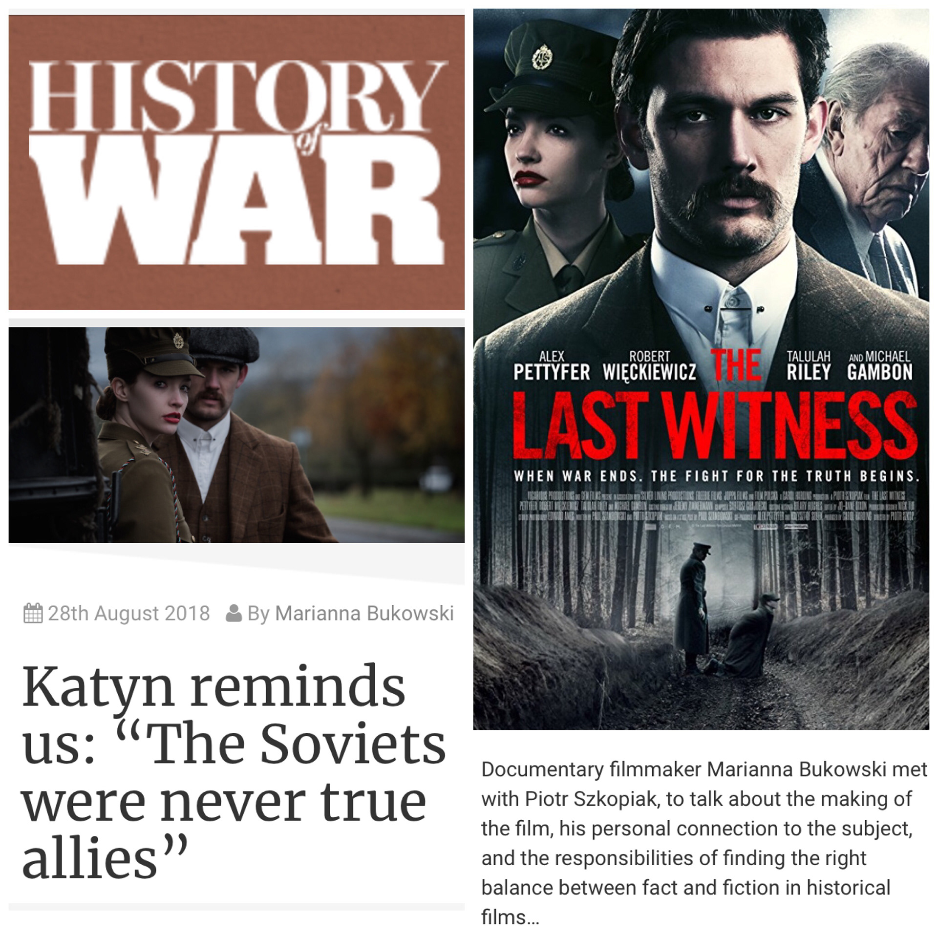 Q&A with "The Last Witness" Film Director, Piotr Szkopiak, by Marianna Bukowski for History of War online platform, August 2018.
