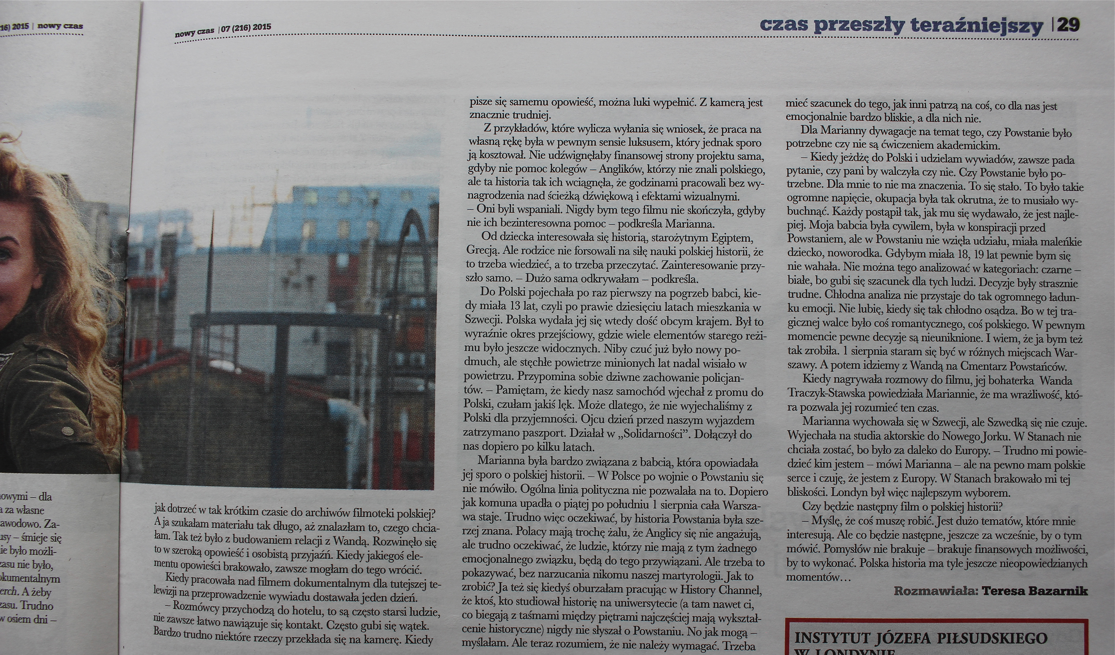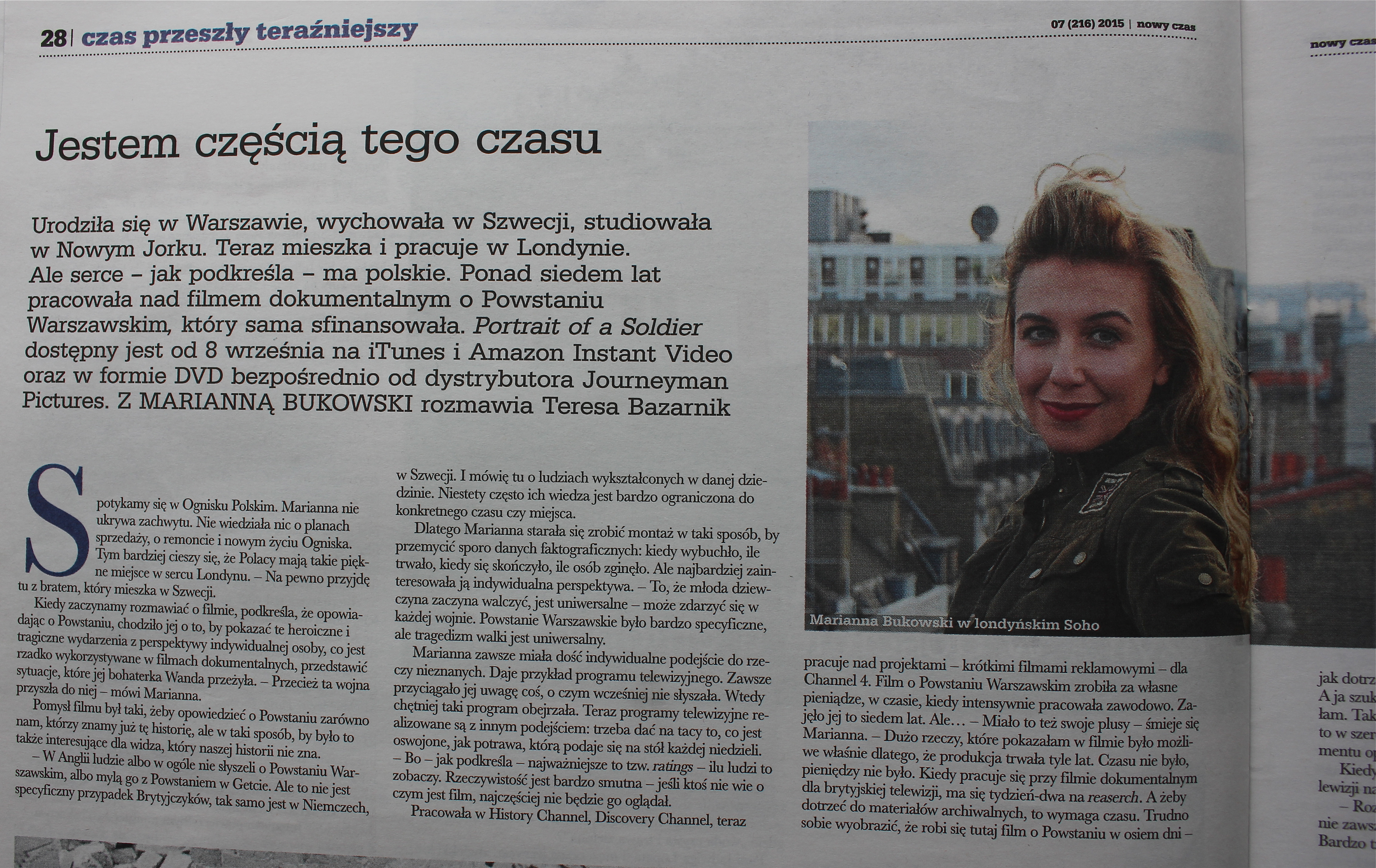 Article (in Polish) and film review (in English) - 'Portrait of a Soldier' documentary. Nowy Czas newspaper, September 2015.