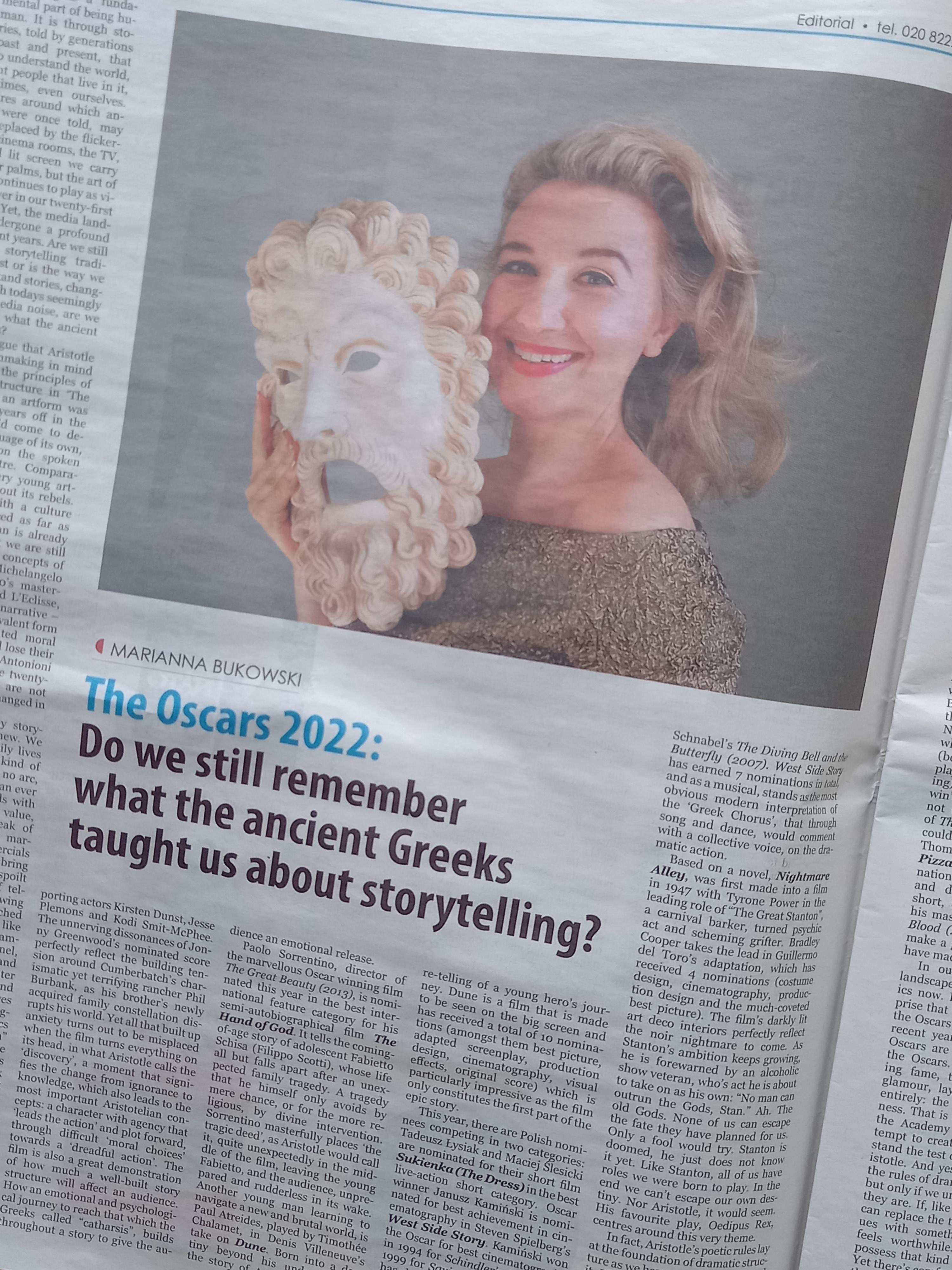 Oscars 2022: Do We Still Remember What the Ancient Greeks Taught Us About Storytelling? Article by Marianna Bukowski for Tydzien Polski / Polish Weekly (1700 words, in English) Published in print issue, March 2022.