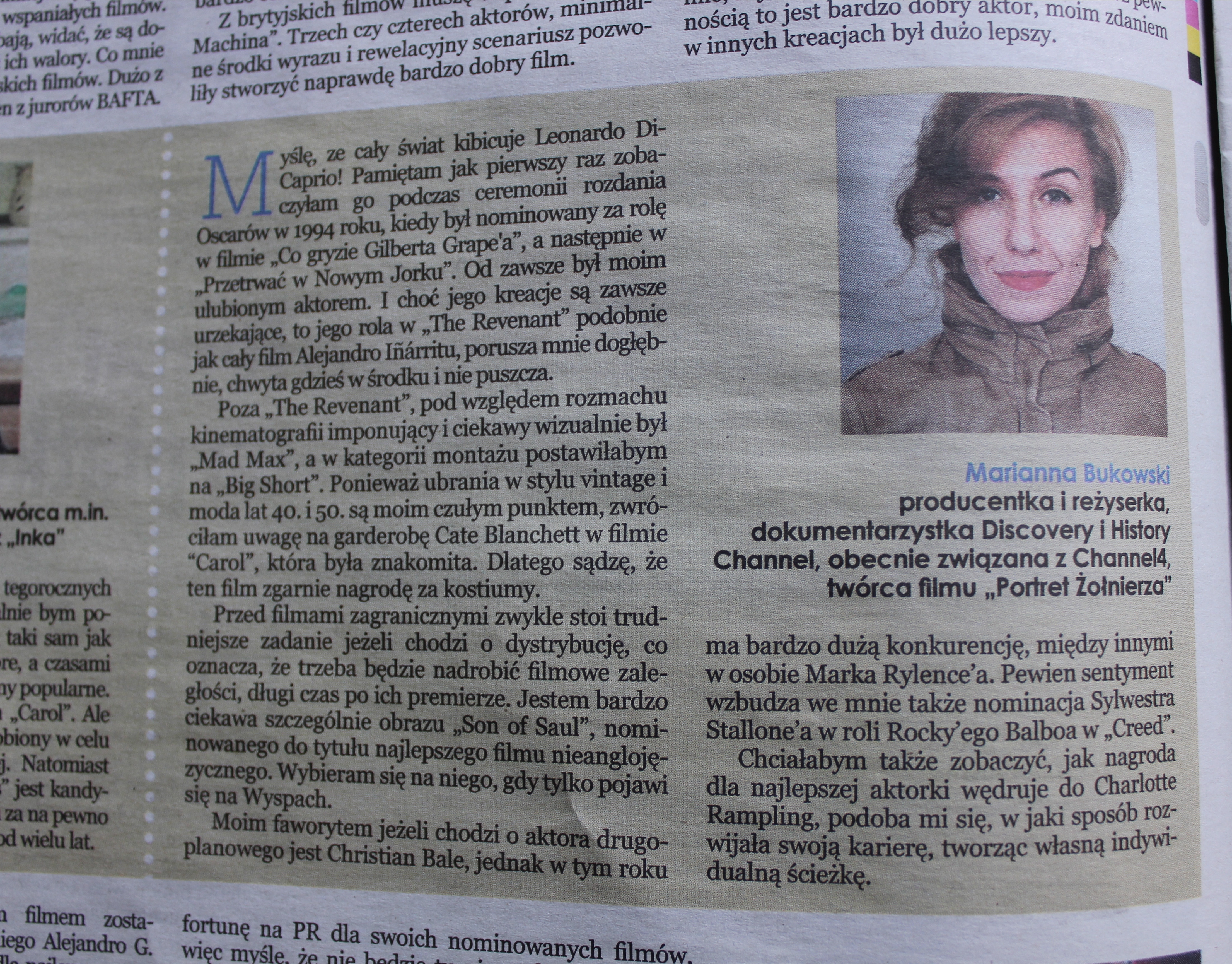 Commentary on Oscars 2016 in Tydzien Polski newspaper.