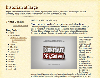 Film review of 'Portrait of a Soldier" by Historian Roger Moorhouse. September 2015.