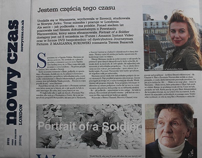 Article (in Polish) and film review (in English) - 'Portrait of a Soldier' documentary. Nowy Czas newspaper, September 2015.