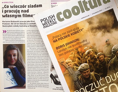 Cover Feature Interview 'Portrait of a Director'. Tydzien Polski (Polish Weekly) newspaper, April 2016.