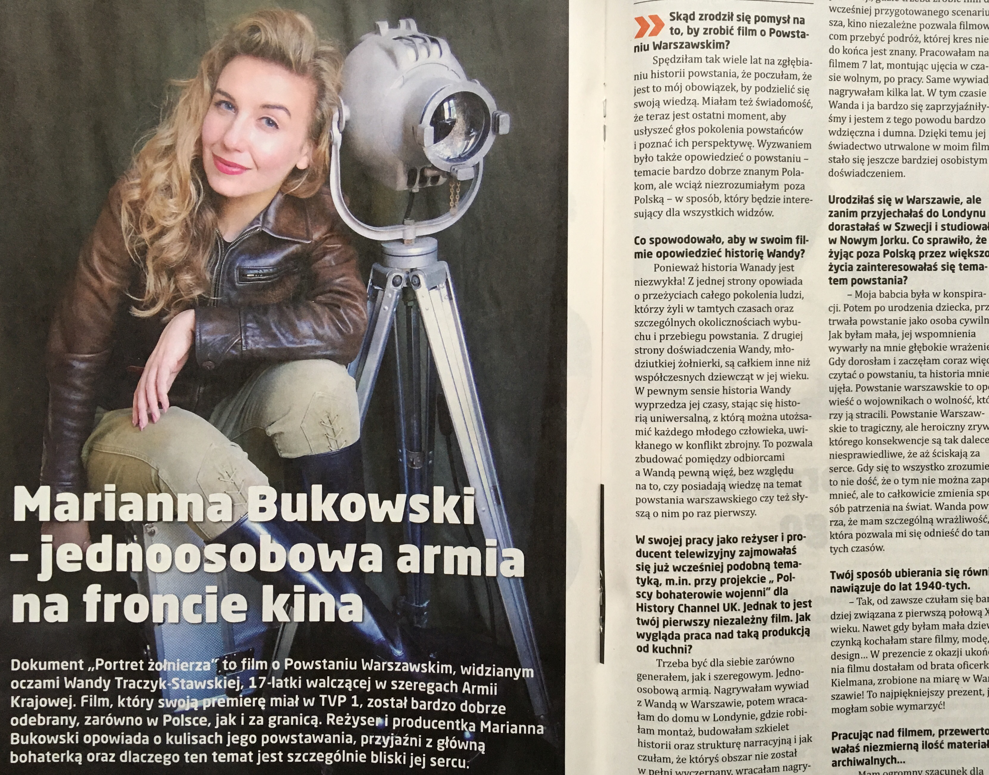 Interview about 'Portrait of a Soldier' film, Nasza Historia (Polish History Magazine). July - August 2015.