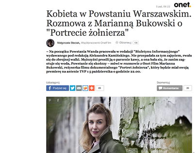 Interview about 'Portraif of a Soldier' film, Onet.pl 01.10.15