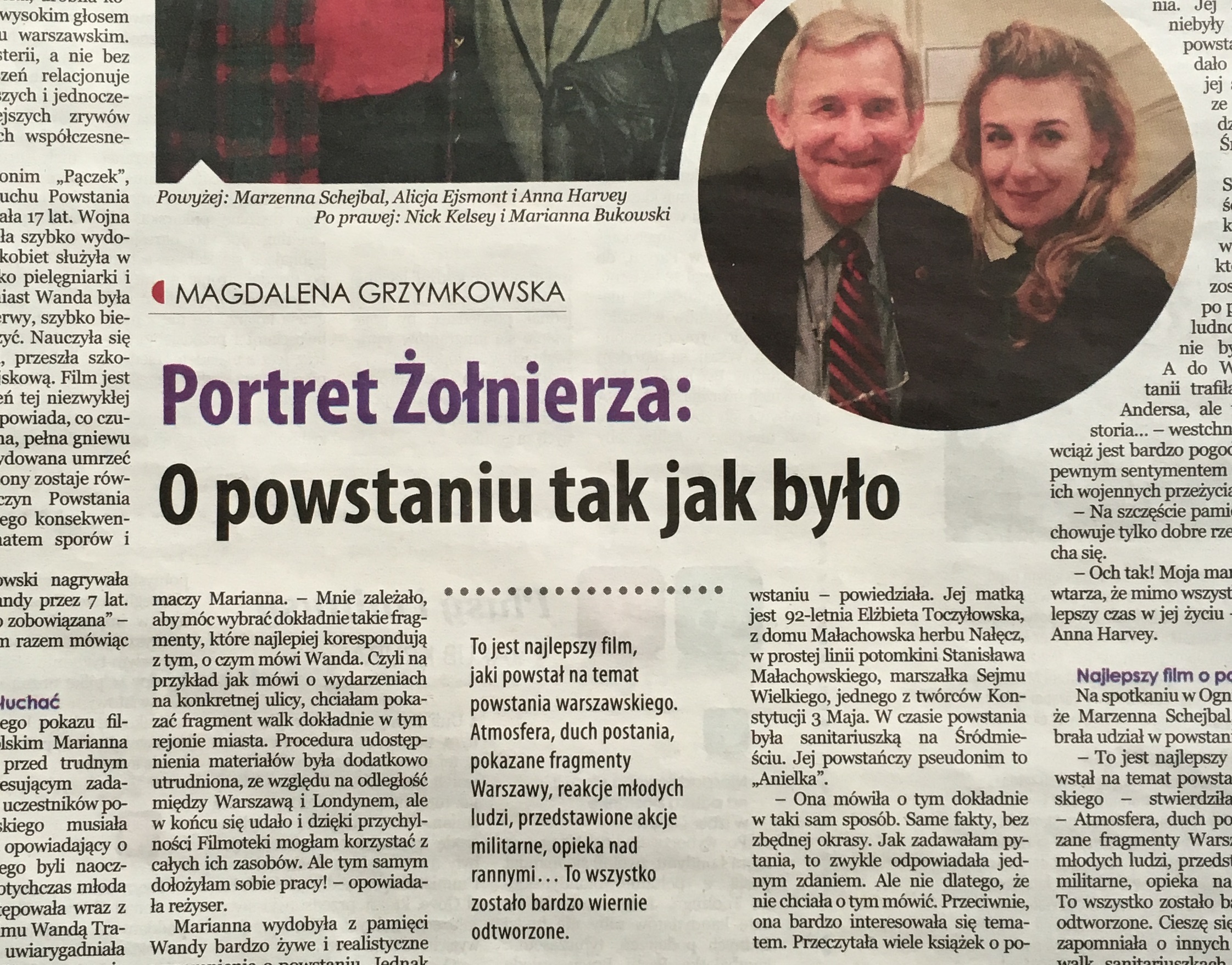 Tydzien Polski (Polish Weekly) article - 'Portrait of a Soldier' documentary.
